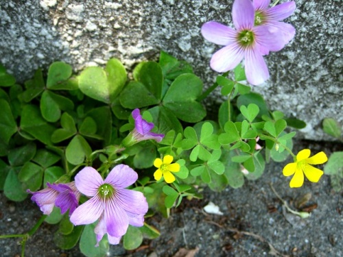紫三角葉オキザリス 小さな庭と花々