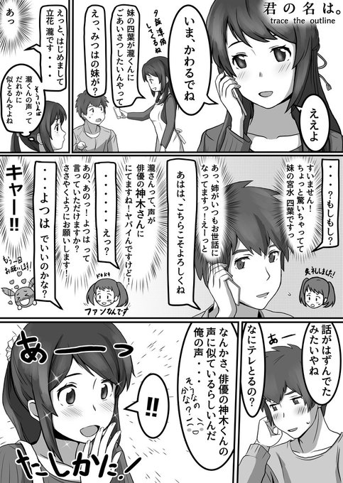 すら A Twitter 君の名は 高校生四葉と瀧くんのご対面 妄想漫画