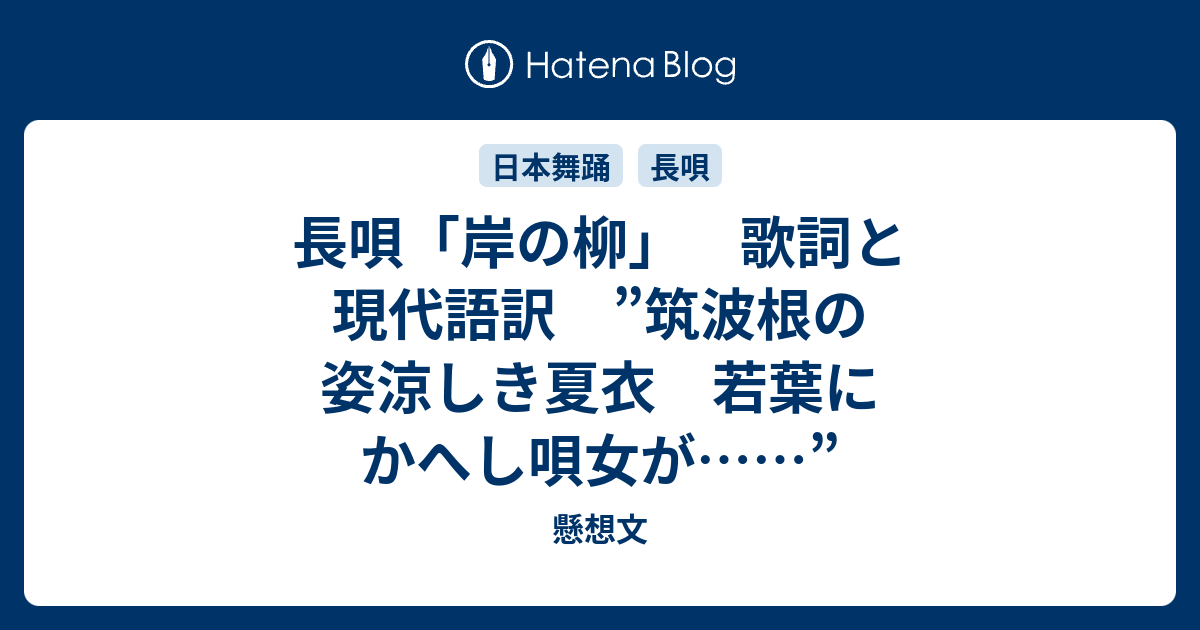長唄 岸の柳 歌詞と現代語訳 筑波根の姿涼しき夏衣 若葉にかへし唄女が 懸想文