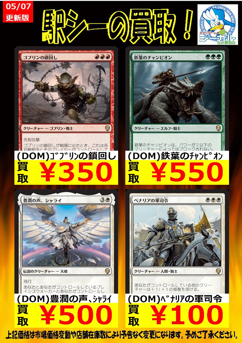 カードゲームのシーガル仙台駅前店 Di Twitter Mtgスタンダード高価買取情報 今がチャンスなんじゃない Dom 鉄葉の チャンピオン 550 Dom 豊潤の声 シャライ 500 Dom ファイレクシア教典 600 Dom ゴブリンの鎖回し 350 Mtgjp シーガル シーガル仙台駅前